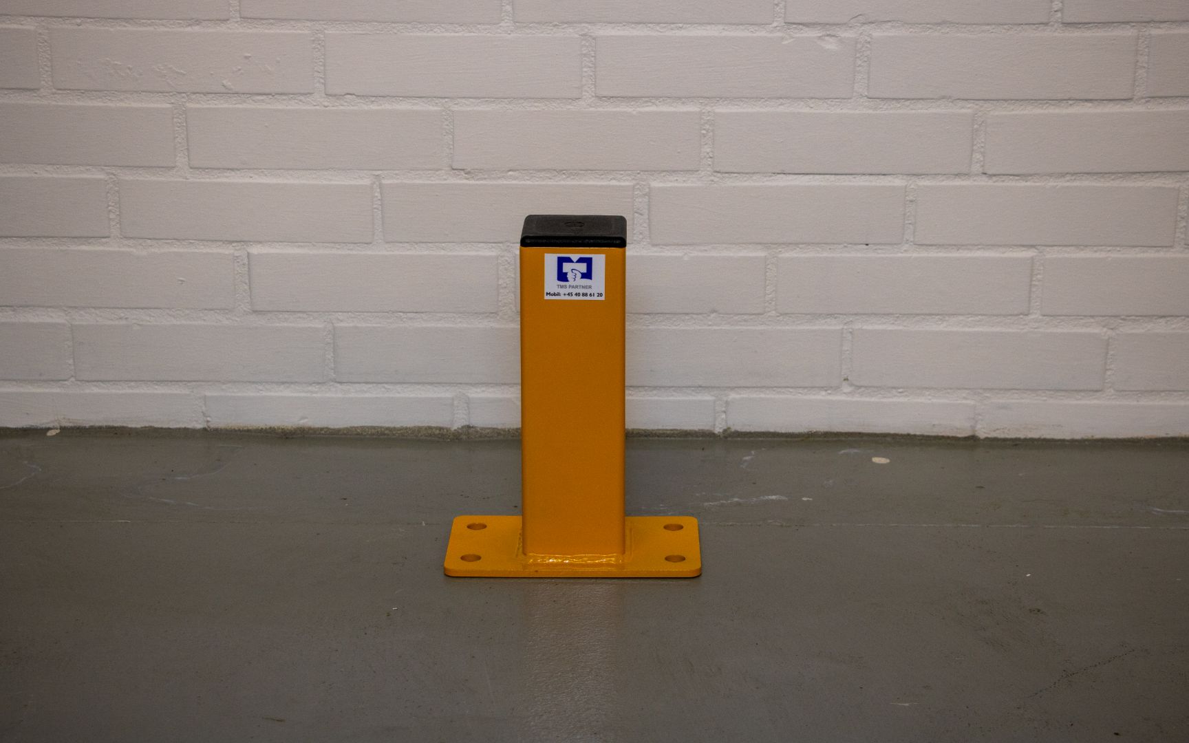 Pullerten er fremstillet på vores eget værksted i Danmark og pulverlakeret i en synlig gul farve, så den fungerer både som sikkerhedselement og visuel markering i trafikbelastede miljøer. Vi laver den også i 1 meter, hvis man ønsker større synlighed og i galvaniseret. Den monteres nemt i gulvet for en stabil og permanent løsning (bolte medfølger ikke).